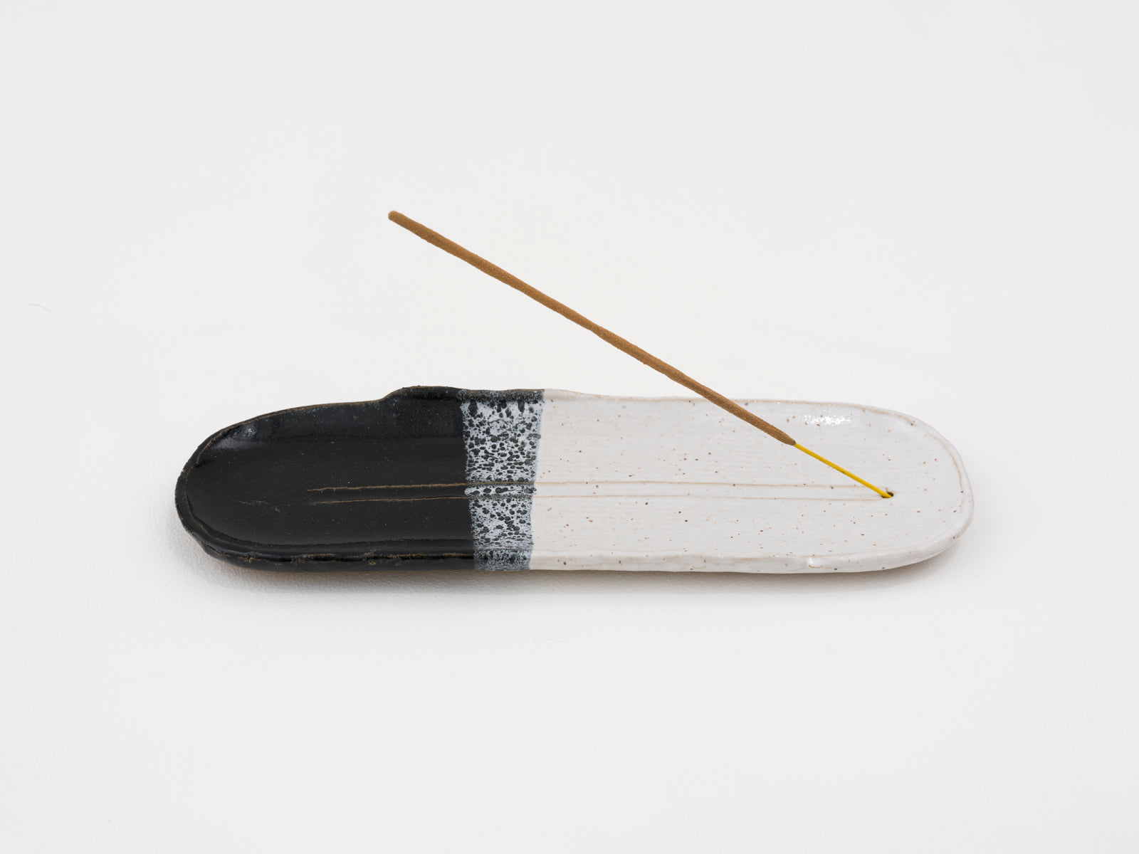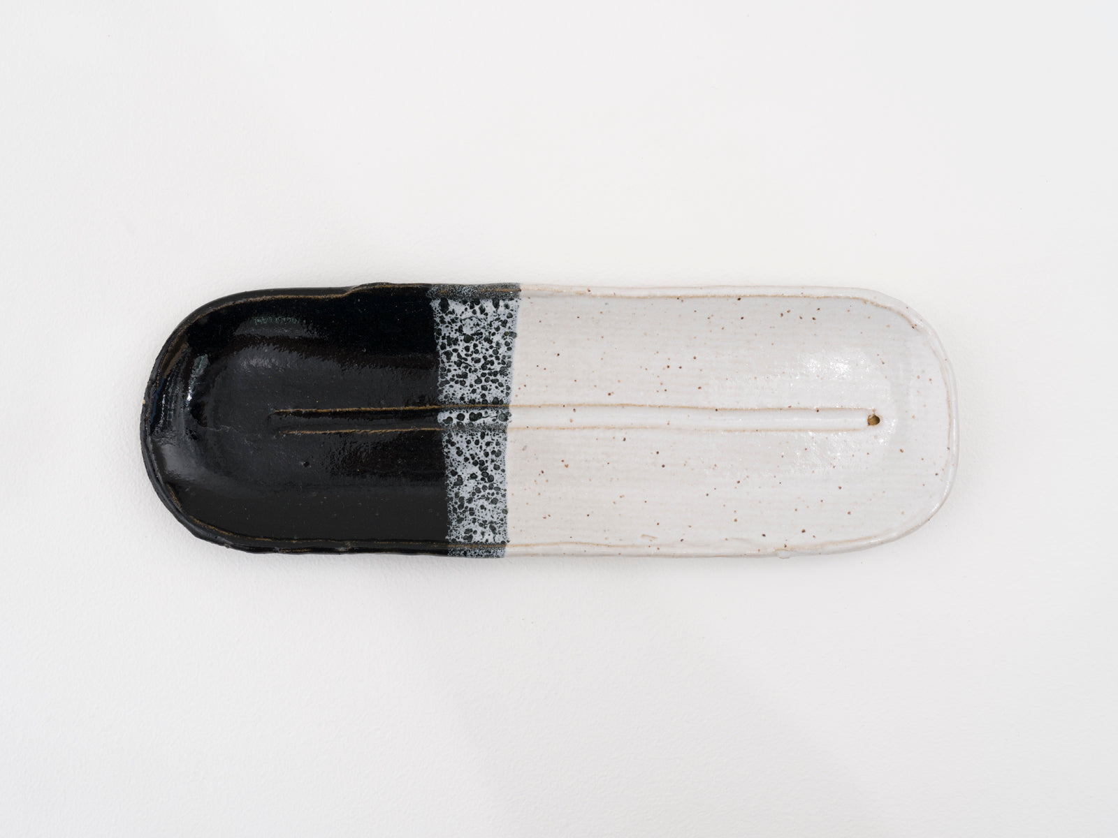 Classic design for an incense burner. The flat tray catches the ashes and is glazed with Reaperware's black and white "bleed" glaze.